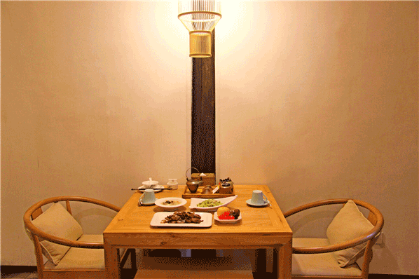房间使用原木与白两种原色,设置简洁舒适。简洁却绝不意味着简单,景致的茶具,错落有致的摆设物件,就连吊灯的设计都是独一无二的。